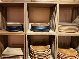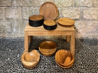 A select variety of plates and bowls handcrated in teak.